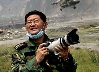 不到10公里的山路,我竟跌跌撞撞走了3個多小時。在當地兩位志愿者幫助下,我終于到達了映秀鎮。如果沒有他們幫我背器材,我還不知道要走多久。 疲憊不堪的我一踏上映秀鎮,看到的只是群山中的一片廢墟,漩口中學倒塌的樓房最為明顯。在廢墟前面的空地上,躺著數不清的等待救援的傷員,還有救援部隊官兵奔波的身影,緊張的氣氛就像一部戰爭影片的場景。 不拋棄,不放棄!這是中國一場前所未有的生死大營救,前來救援的直升機轟鳴聲在山谷里回蕩,每當直升機一落地,官兵們就冒著彌漫的塵土,抬起擔架向直升機沖去,快速搶運受傷群眾。在空地上等待救援的大批傷員,仰望天空,翹首企盼。 為了更多地挽救地震中受傷災民的生命,成都軍區每天派往映秀的直升機多達幾十個架次,使大批的傷員得到及時治療。直升機還為徒步進入的先期部隊送來了食品和淡水。 在映秀鎮的廢墟旁,我見到了濟南軍區“鐵軍”127師師長楊劍,得知濟南軍區已有4萬多名將士開赴災區,他親自率領著800名“鐵軍先遣隊”連夜徒步從都江堰出發,急行軍來到受災嚴重的映秀鎮,50多公里山路他們走了9個小時。 在映秀鎮,遭受損失最嚴重的要屬兩所學校,一所是映秀中心小學,另一所是漩口中學,因為地震時學生們都在教室里上課,絕大多數學生沒來得及跑出來。 我穿過小山一樣的瓦礫,來到位于鎮子里面的映秀中心小學。這里靜得出奇,校舍全部倒塌,只有飄著五星紅旗的旗桿沒有倒,孤獨地立在廢墟中,空曠的操場上擺滿了遇難學生的遺體。一位老鄉告訴我,當時有300多名孩子在這里上課,全被壓在了下面。 武警成都支隊政委李丕金,是一個令我敬佩的人。他的家鄉北川受災嚴重,失去了4名親人,還有6人沒有音訊,可是他強忍悲痛依然帶領部隊官兵奮戰在抗震救災第一線,從12日到16日的4天三夜,他指揮部隊搶救出600多名受災群眾。他身先士卒,凡是艱難險重的任務他都沖鋒在前。為防止災區疫情發生,16日,部隊接到搬運和掩埋遇難者遺體的任務,李政委擔心年十八九歲的年輕戰士有心理障礙,他就主動去抬第一具尸體,并進行耐心講解,打消了官兵們心中的顧慮?粗前炯t的雙眼,同樣作為軍人的我,心中默默地向他敬了個莊嚴的軍禮! 在震中映秀采訪的兩天兩夜,令我終生難忘:沒吃、沒喝、沒地方住,沒洗過臉,沒刷過牙,沒換過衣襪,也沒刮過胡子,甚至沒有大便,因為兩天都沒吃什么東西。臉上和頭發里全是土,臉被太陽曬得黝黑,就像回到了原始社會。隨身攜帶的一件雨衣,成了我過夜的惟一裝具。每天晚上半夜發完稿,雨衣就地一鋪,席地而睡,山里夜間氣溫變化大,總會在后半夜凍醒。 在這里,強烈的余震每天都有很多次,開始還有些在意,后來就習慣了。記得第一天凌晨2點30左右,一次6.1級的強余震發生,將躺在地上的我震醒,不遠處的山體滑落的巨石砸落在岷江里,發出“轟隆隆”的轟鳴聲,在寂靜的夜里,顯得如此驚心。