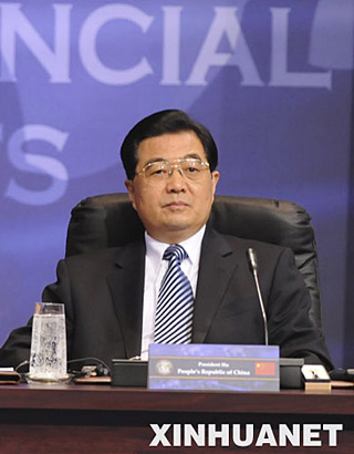 11月15日,中國國家主席胡錦濤在華盛頓出席二十國集團領導人金融市場和世界經濟峰會。 新華社記者 樊如鈞
