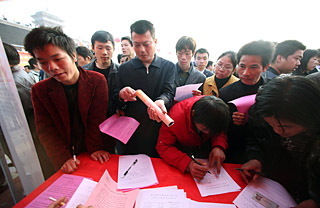 攝) | 有關部門預測,2009年,貴州因金融危機返鄉農民工人數在130萬人至150萬人之間,占全省在外務工農民工總數的20%以上,農民增收面臨前所未有的艱難局面。有關專家認為,大量農民工返鄉,對農村、城鎮治安和社會穩定構成一定潛在威脅,特別是農歷大年后,手中無錢的農民工會再次外出務工,在外部就業形勢嚴峻的狀態下,將引發一系列社會問題。